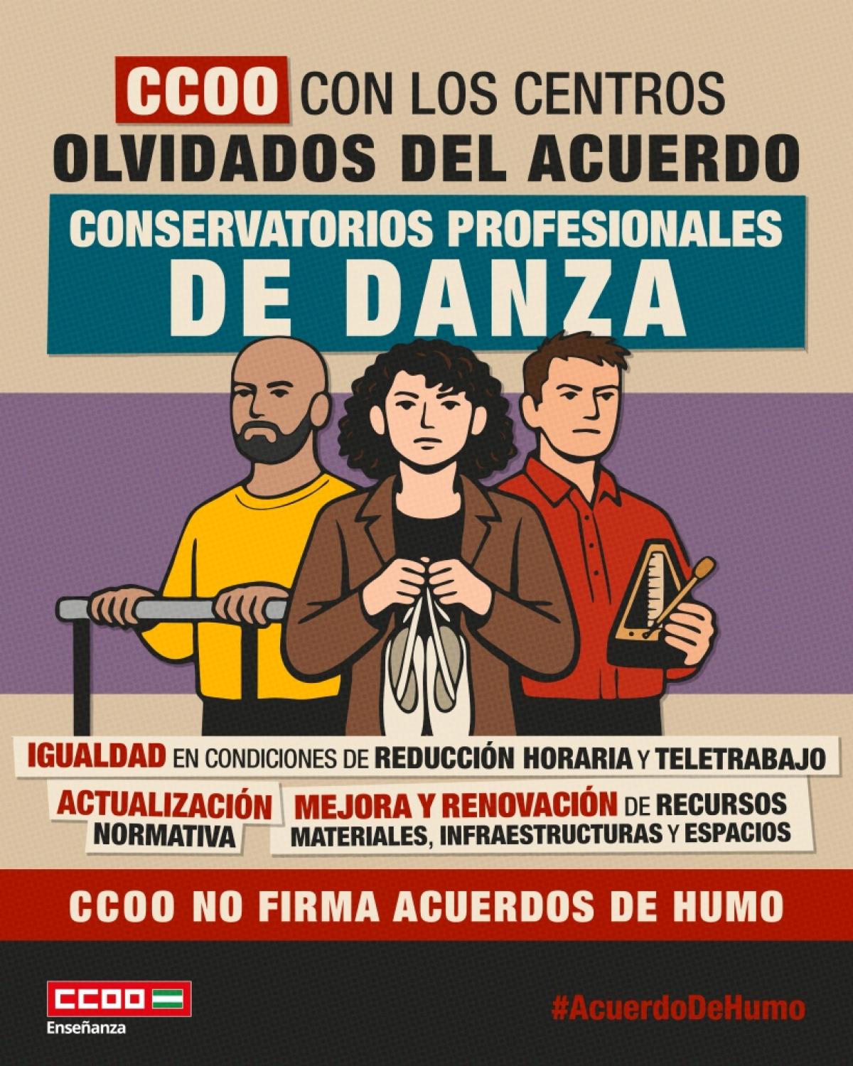 Desde CCOO Enseñanza de Andalucía hemos recogido las principales demandas del profesorado de los Conservatorios Profesionales de Danza para trasladarlas a las mesas de negociación con la Consejería de Desarrollo Educativo y FP.